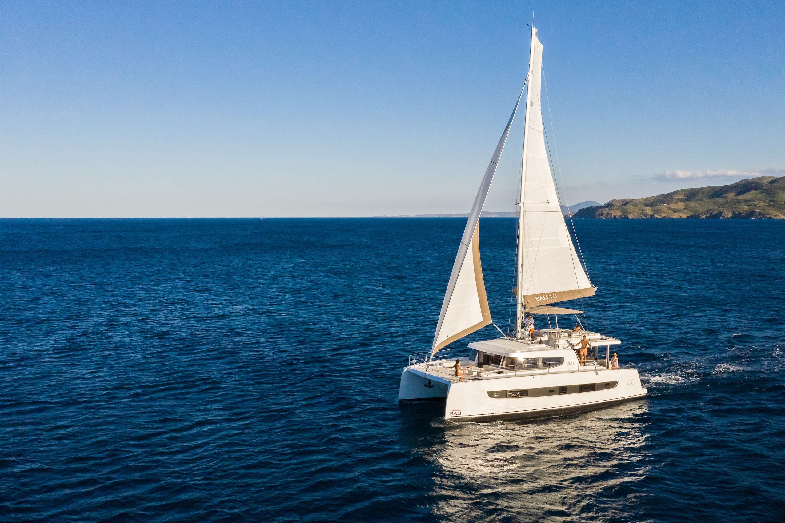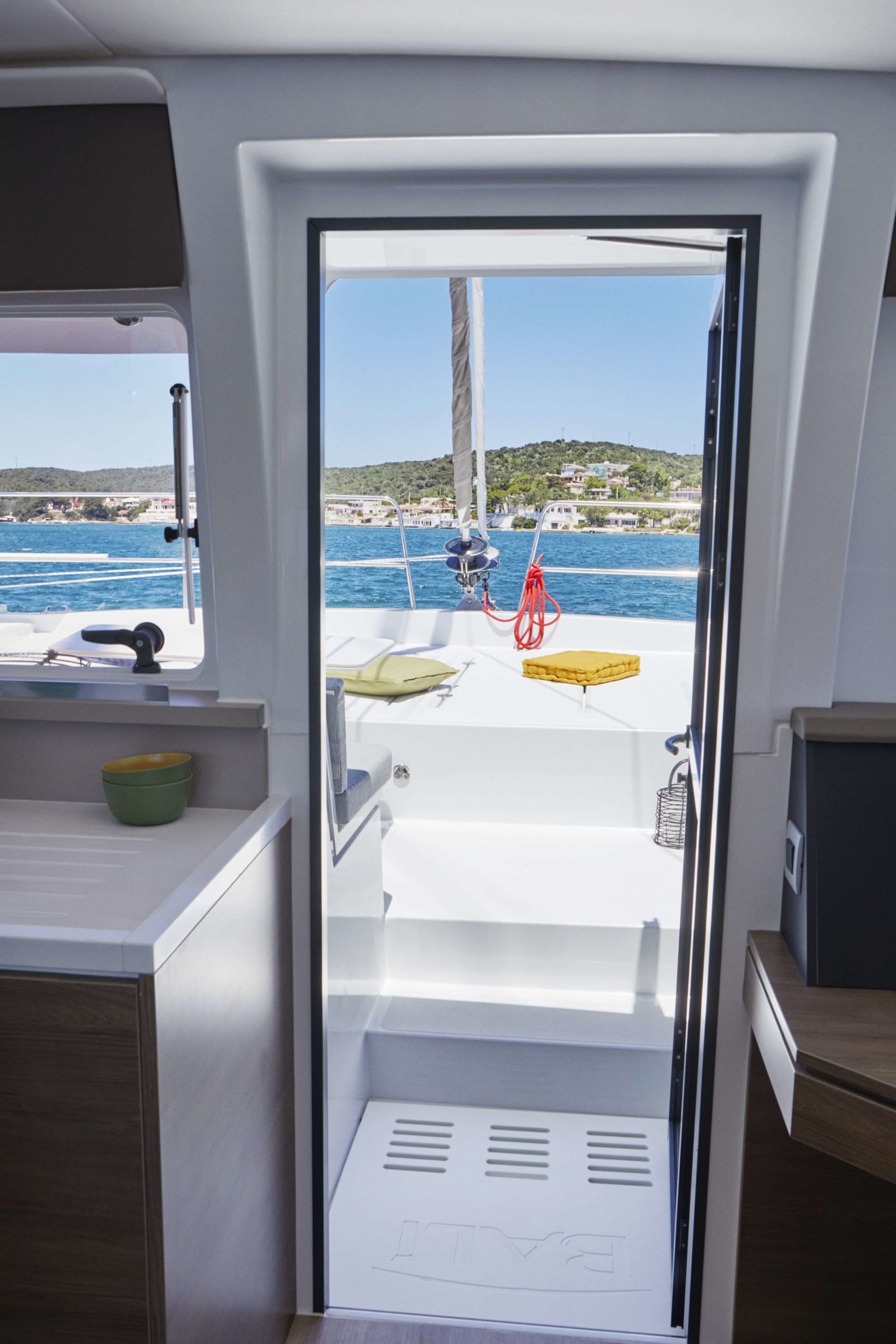 Le BALI 4.8 c’est l’art de vivre à la française. Ce 48 pieds possède tous les atouts de la gamme BALI CATAMARANS : ses étraves fines et droites créant une ligne élégante, ses nombreux rangements, son design contemporain et la « porte BALI ». En navigation comme au mouillage, la circulation du carré au cockpit avant se fait en clin d’œil par la porte étanche. Lors des avitaillements et des sorties, un système de bossoir simple et pratique permet de profiter de l’annexe en toute facilité.
