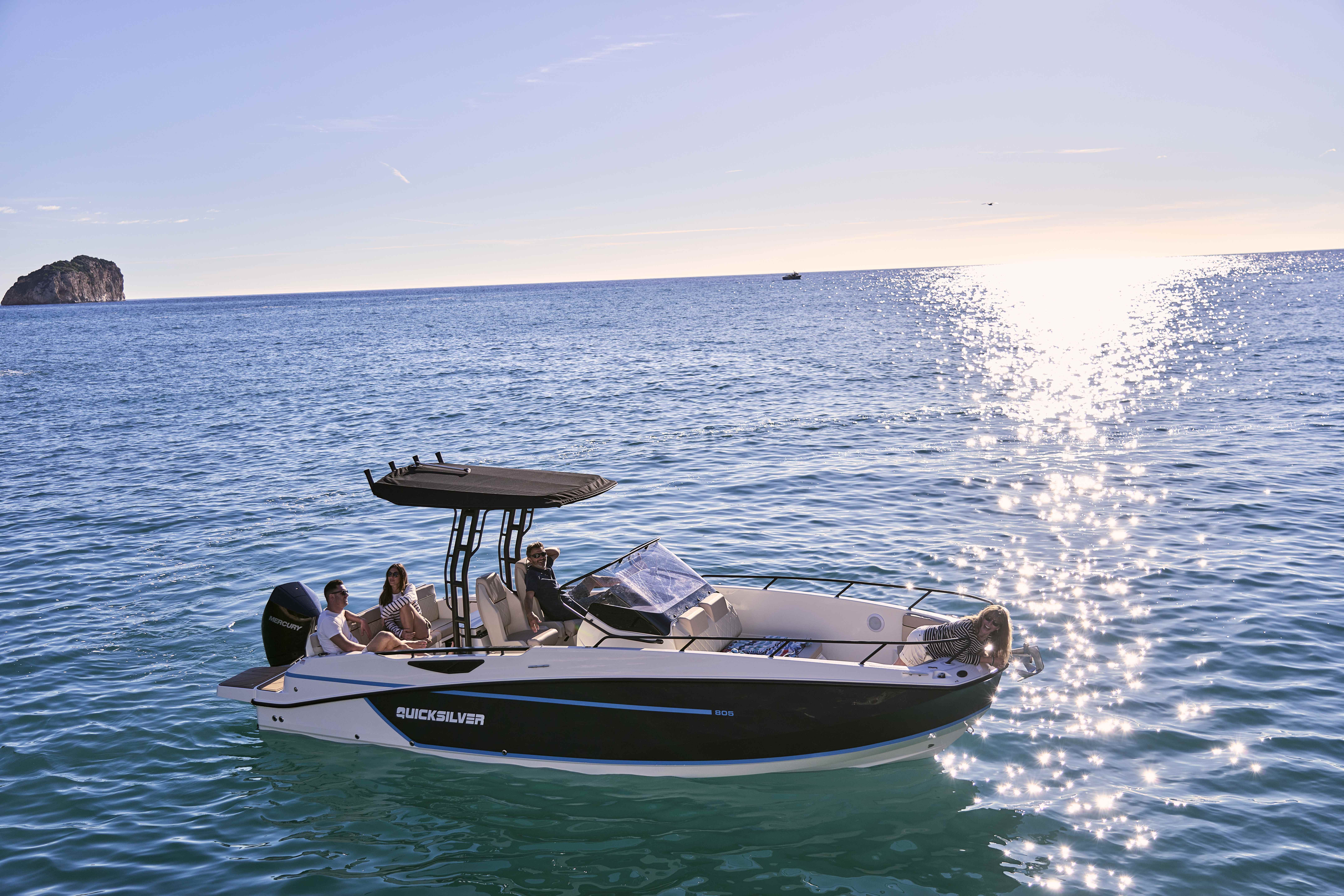Le choix idéal pour vivre la mer en grand ! Le Quicksilver 805 Open séduit par ses lignes modernes, son immense cockpit modulable et son bain de soleil avant généreux pour profiter pleinement de vos journées au large.