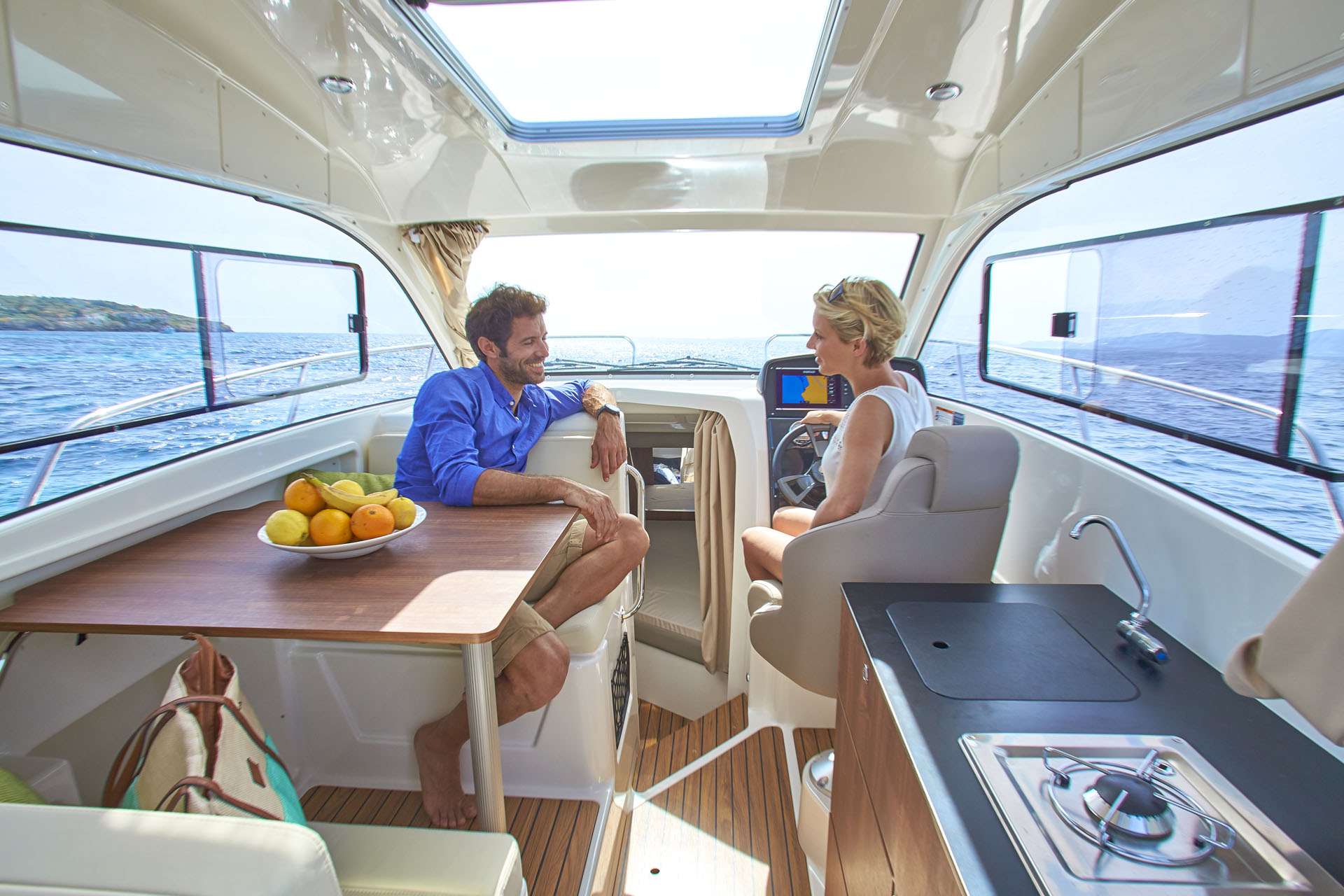 Son cockpit spacieux et modulable, sa cabine lumineuse avec couchages confortables, cuisine équipée et salle d’eau privative en font un véritable petit yacht compact. La carène robuste garantit stabilité et plaisir de navigation, tandis que ses nombreux rangements optimisent l’espace à bord.